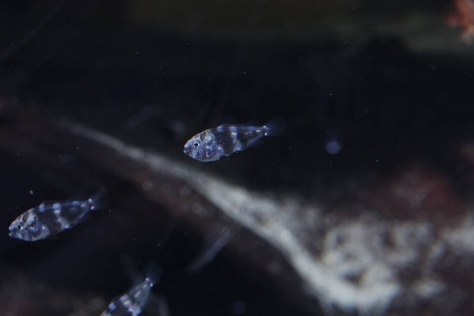 Nach ein bis zwei Tagen schlüpfen die Eier und die Huderphase beginnt. Während der Huderphase, die Zeit zwischen dem Schlupf der Eier und dem Freischwimmen der Jungfische, werden die Larven in einer von den Eltern ausgehobenen Kuhle bewacht. In dieser Zeit ernähren sich die Larven noch von dem Dottersack. Später, wenn die Jungfische nach ein bis zwei Wochen freischwimmen, produzieren die Eltern ein Hautsekret, wovon sich die Jungfische ernähren, ähnlich wie die Gattung Symphysodon.