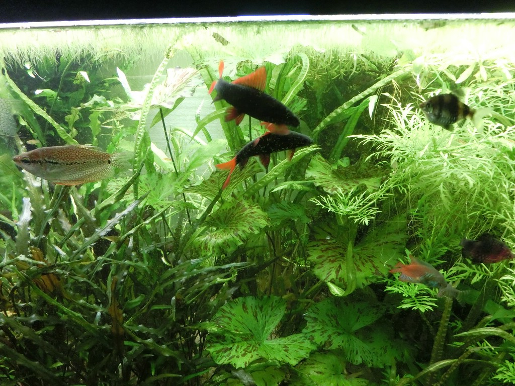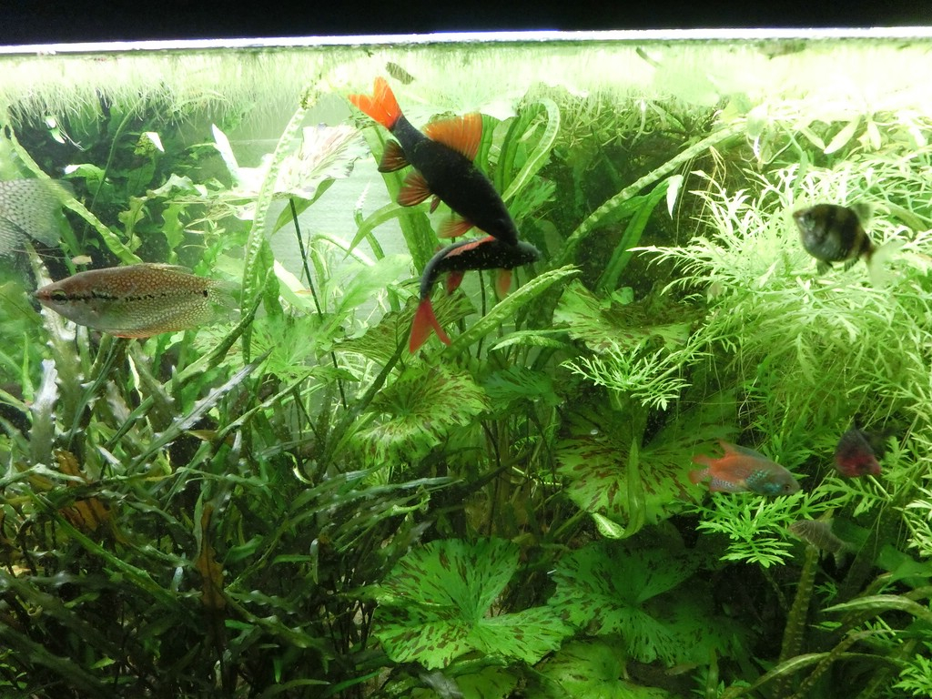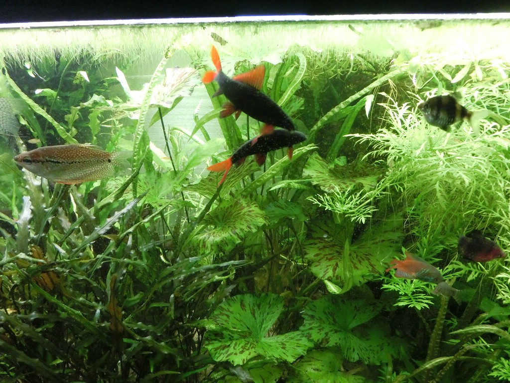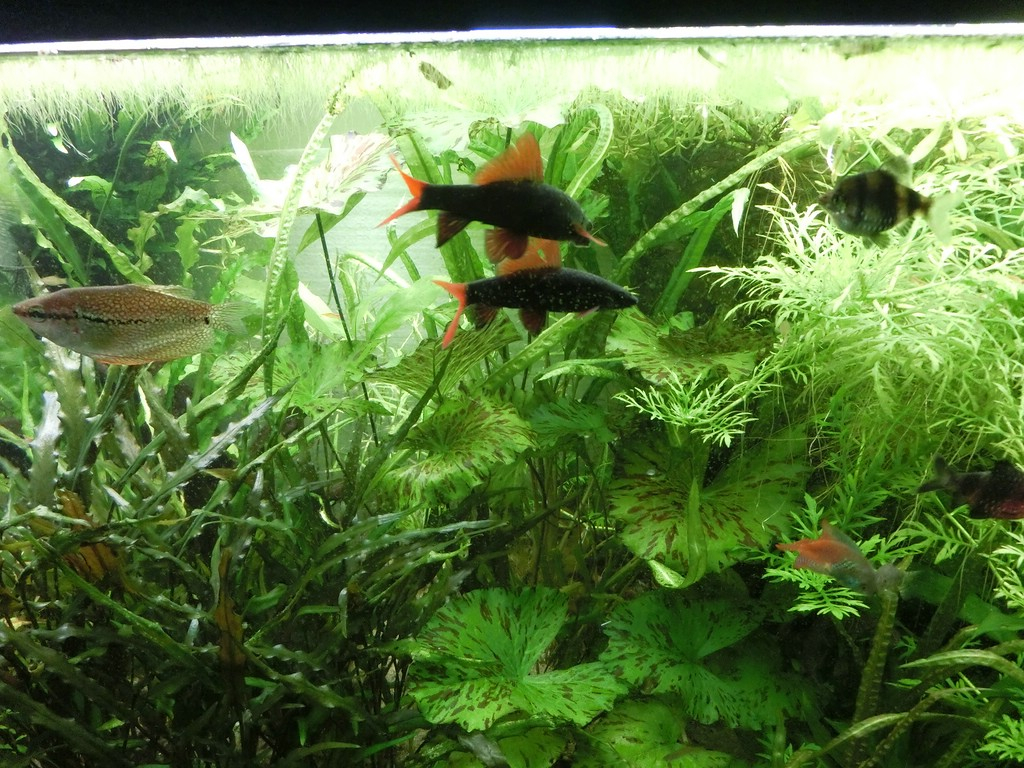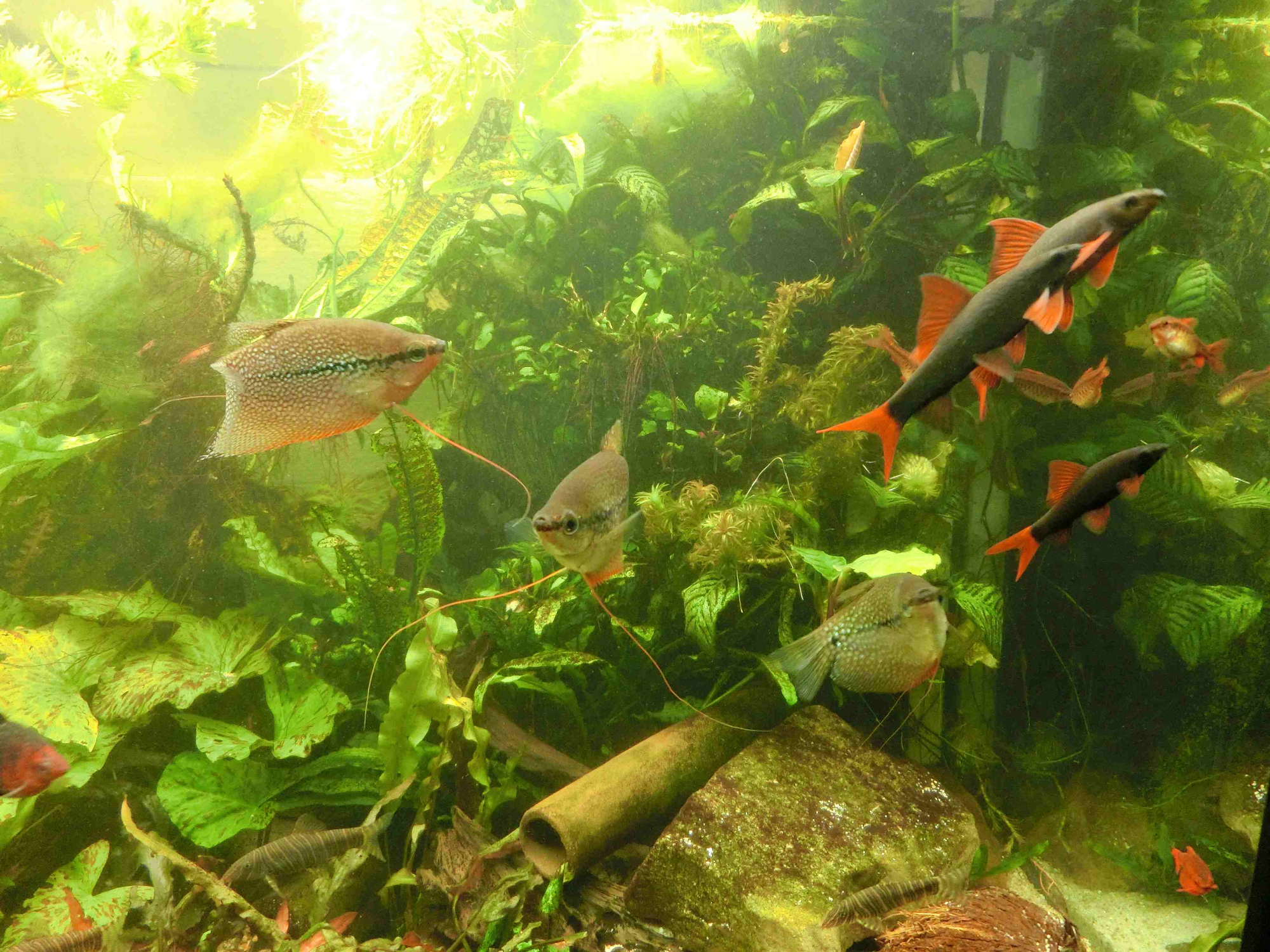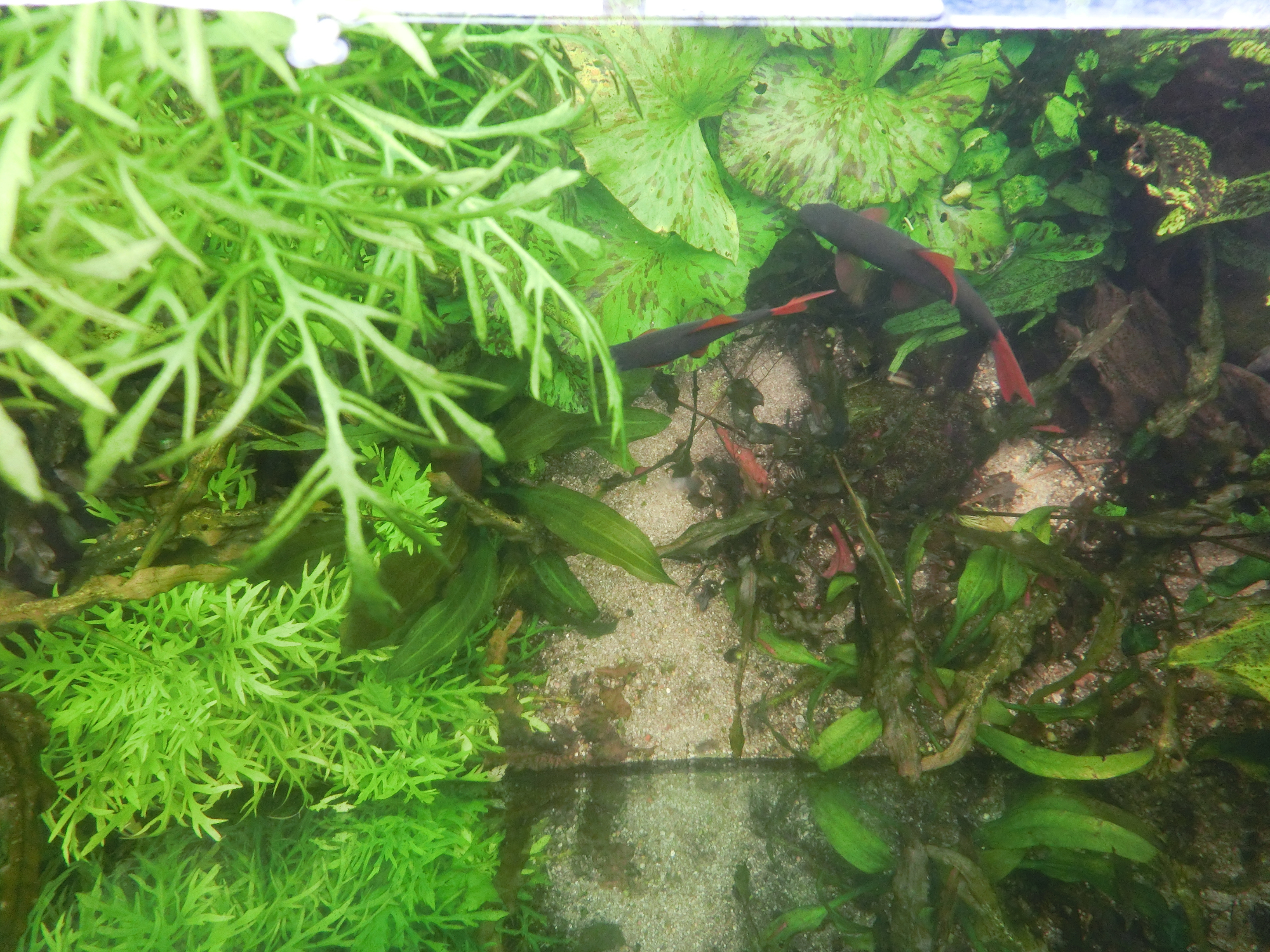 Anfänglich wurden meine Rüsselbarben gelegentlich mit Nachdurck verfolgt. Auch gleichfarbige, rote Fische (Bitterlingsbarben-Männer) waren ihnen nicht sympathisch und wurden ab und an verfolgt.