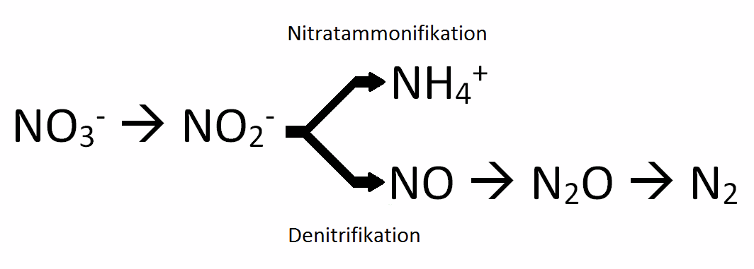 Stickstoffverbindungen werden dabei solange reduziert, bis elementarer Stickstoff entsteht, welcher nun über die Wasseroberfläche in die Atmosphäre gelangt.